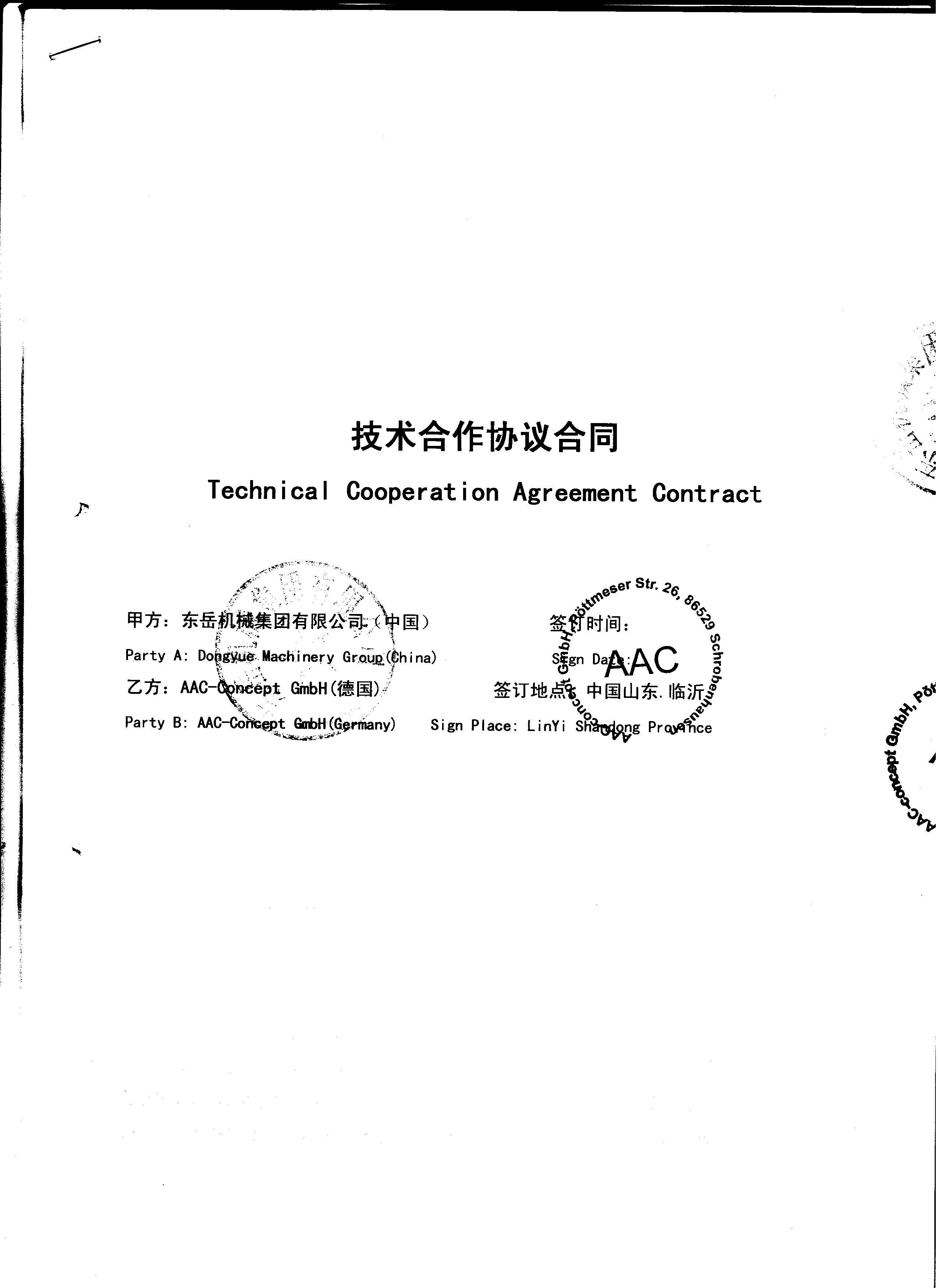 ?東岳機械股份有限公司與德國卡茨貝通集團(tuán)技術(shù)合作協(xié)議證明:
